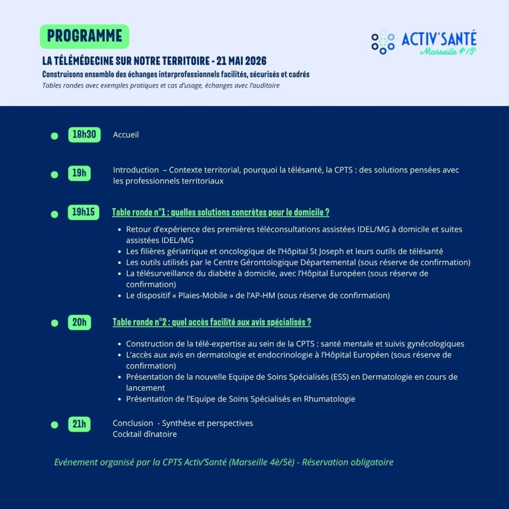 La CPTS organise une soirée dédiée à la télémédecine, ouverte aux médecins, sages-femmes, infirmier.es et aux professionnel.les de santé du territoire intéressé.es par ce sujet.